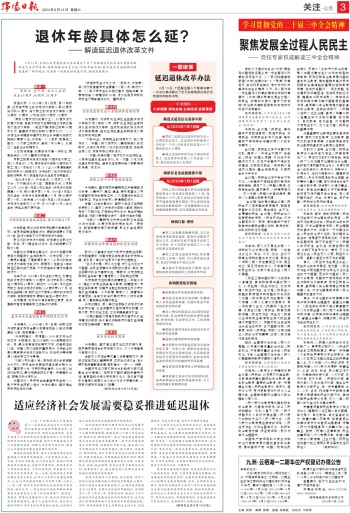 9月13日,全国人大常委会会议表决通过了关于实施渐进式延迟法定退休年龄的决定并对外发布。退休年龄具体怎么延?何时开始实施?能不能自愿选择弹性提前退休?“新华视点”记者第一时间采访权威专家,梳理政策要点。
