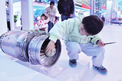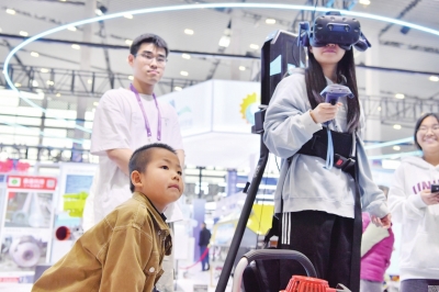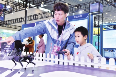 11月8日,许多孩子在家长的陪伴下来到第十二届中国(绵阳)科技城国际科技博览会展会现场,无人机、机器狗、潜水器、发动机等,一件件展品吸引了孩子们好奇的目光。在多个互动展区,参展商让孩子们亲手操控体验,充分感受科技的魅力,种下梦想的种子。(记者王勇摄影报道)