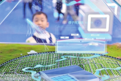 小朋友被高海拔宇宙线观测站全息模型发出的光线所吸引