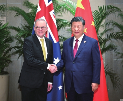 阿尔巴尼斯表示,很高兴在澳中全面战略伙伴关系建立十周年之际再次同习近平主席会面。自我去年访华以来,澳中关系在包括贸易在内的各领域取得令人鼓舞的进展,为两国人民带来实实在在的利益。澳方坚持奉行一个中国政策,反对“脱钩”,主张推进经济全球化,希望同中方加强在能源转型、气候变化等方面合作。中国发展为亚太地区长期保持稳定和增长作出重要贡献,澳方赞赏中国在亚太经合组织等多边机制发挥的重要作用,支持中国担任2026年亚太经合组织东道主,愿同中方加强多边沟通,促进地区和平稳定和繁荣发展。
