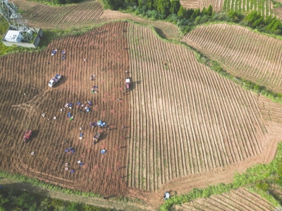 很难想象,如今喜获丰收的红薯种植基地,去年还是一片撂荒地。