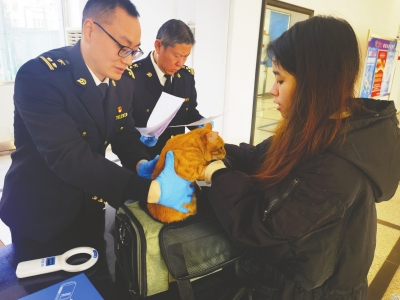 本报讯(记者 彭雪 文/图)12月16日,绵阳海关为一只输入坦桑尼亚的宠物橘猫签发了《动物卫生证书》,这是绵阳海关签发的首份输非宠物《动物卫生证书》。