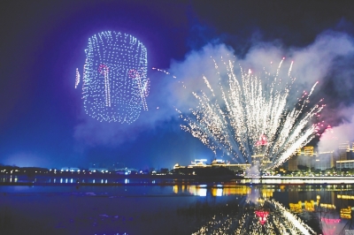 本报讯(记者 尹秦 朱博文 王勇 文/图)星光映夜空,光影秀祝福。1月29日—1月31日(初一至初三,每天20:30-21:30),以“烟火绵州巳巳如意”为主题的无人机灯光秀表演在绵阳金西湖畔精彩上演。