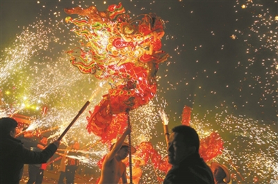 在山东省邹城市,有着百年传承历史的非遗——火虎表演,也以全新面貌迎接申遗成功后的首个春节。火虎非物质文化遗产代表性传承人周长来将传统表演道具材料改良为阻燃碳纤维材料,将火药捻子改用冷光烟花,并与无人机灯光秀配合,为市民呈现出了新旧融合的火虎表演视觉盛宴。