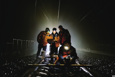 施工现场,虽然天气寒冷,但施工人员脸上却冒出了汗珠,捣固车在施工区段缓慢前行,车上的夯拍器和捣固镐配合默契,有节奏地插入、震动、捣固、夯拍。随后,道床整理组作业人员迅速清理道床,补充回填,将道砟重新进行“排兵布阵”。