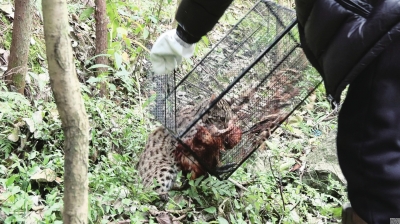 最近,刘启友碰上了怪事:自家养的鸡、鸭、鹅隔三岔五就莫名其妙少几只。在对房屋后的山林展开搜寻时,他发现家禽羽毛遍布多处。为了揪出这个“神秘来客”,刘启友利用拾捡回来的家禽残肢为诱饵,设下陷阱,没想到还真让他抓住了这个“猛兽”。随后,刘启友向安州区自然资源局野生动物保护站打电话,告知自己抓住了一只“猫”,该动物异常凶猛,龇牙咧嘴,身上布满了豹纹,他不知该如何处置。接到电话后,安州区自然资源局野生动物保护站工作人员立刻赶赴现场,经过仔细比对,确认该动物为国家二级保护动物豹猫。近年来,安州区千佛、高川等地曾多次监测到豹猫的踪迹,但在人类聚集区发现豹猫尚属首次。确认这只豹猫身体状况良好后,工作人员将其带到20公里外的野外山林放归。