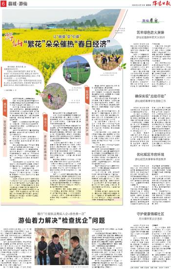 百花争艳、生机盎然,当前的游仙勾勒出一幅五彩缤纷、斑斓多姿的壮美画卷,激发了人们踏春出游、赏花看景的意愿,也催开火热的“赏花经济”。这是活力迸发的春天模样,更是美丽游仙的厚重底色。