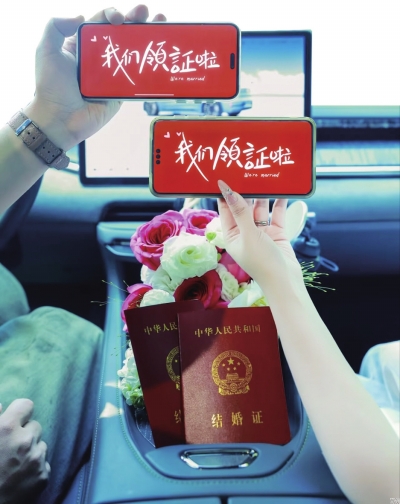 因为谐音“我爱你”,5月20日被许多新人视为结婚的好日子。当天,全市各婚姻登记处在“全国通办”、只需身份证即可办理结婚登记的便捷手续之外,还为新人们准备了不少小惊喜。