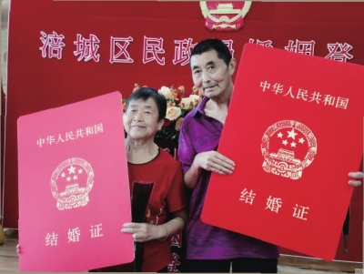 在众多新人中,年逾七旬的“金婚夫妻”郑守军和妻子张洪俊格外引人注目。老两口结婚证掉了,当天是来补领结婚证的。得知二人已是“金婚”,工作人员热情地为张婆婆送玫瑰、戴上头纱,摄影师为他们定格幸福时刻,两人笑得合不拢嘴。“硬是没想到补领结婚证弥补了我们这辈子的遗憾。”郑大爷感慨地说。“我们结婚时家里什么都没有,房子是草房,更别说彩礼、汽车。这么多年来,我们努力干活、养育孩子,也有过矛盾,虽然生气,但最后还是相互理解。现在,我们的生活从一无所有到吃穿不愁,很幸福。”张婆婆笑着说。