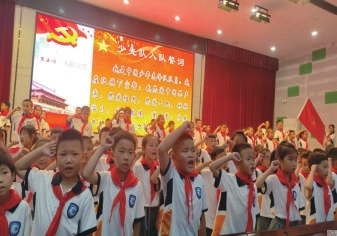 仪式尾声,全体队员在“时刻准备着”的呼号声中立下报国志向。队旗在注目礼中缓缓退场,而红色的种子已在童心深深扎根。