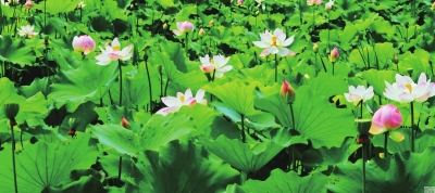 仲夏时节,在江油市青莲镇李白故居漫波渡,满塘的荷花呈现出“接天莲叶无穷碧,映日荷花别样红”的壮丽景象。荷花盛开,吸引众多市民游客慕名前来观赏、拍照。在享受夏日里的清凉和惬意的同时,也感受到李白诗歌的魅力和文化底蕴。